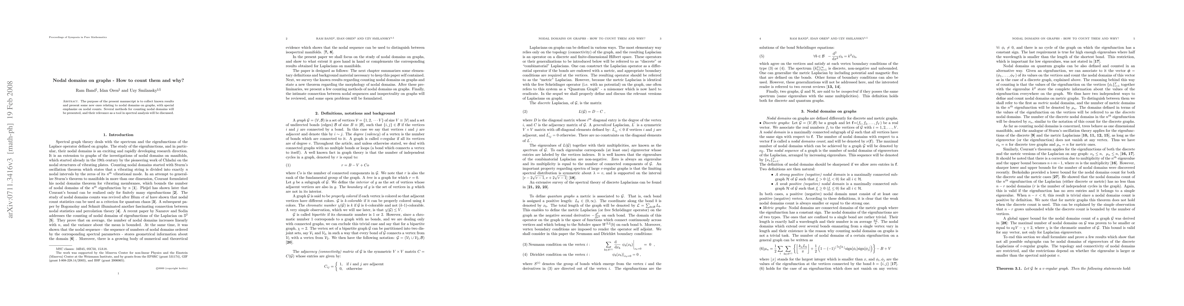 The purpose of the present manuscript is to collect known results and present some new ones relating to nodal domains on graphs, with special emphasize on nodal counts. Several methods for counting nodal domains will be presented, and their relevance as a tool in spectral analysis will be discussed.