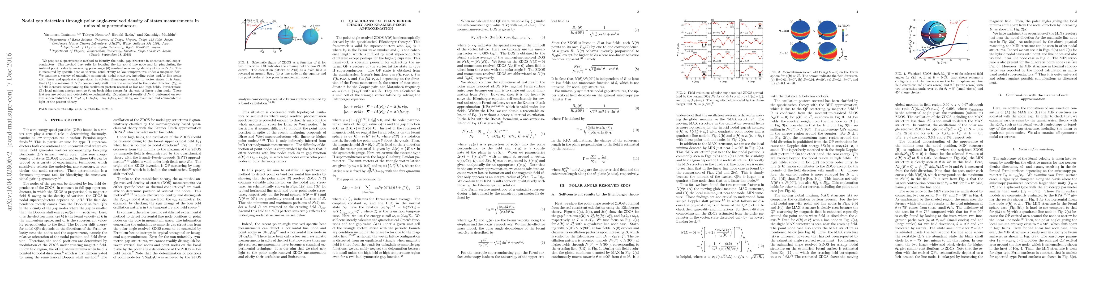 Researchers develop a method to detect nodal gaps in unconventional superconductors using polar angle-resolved density of states measurements, which can identify horizontal line nodes and isolated point nodes with varying dispersions.