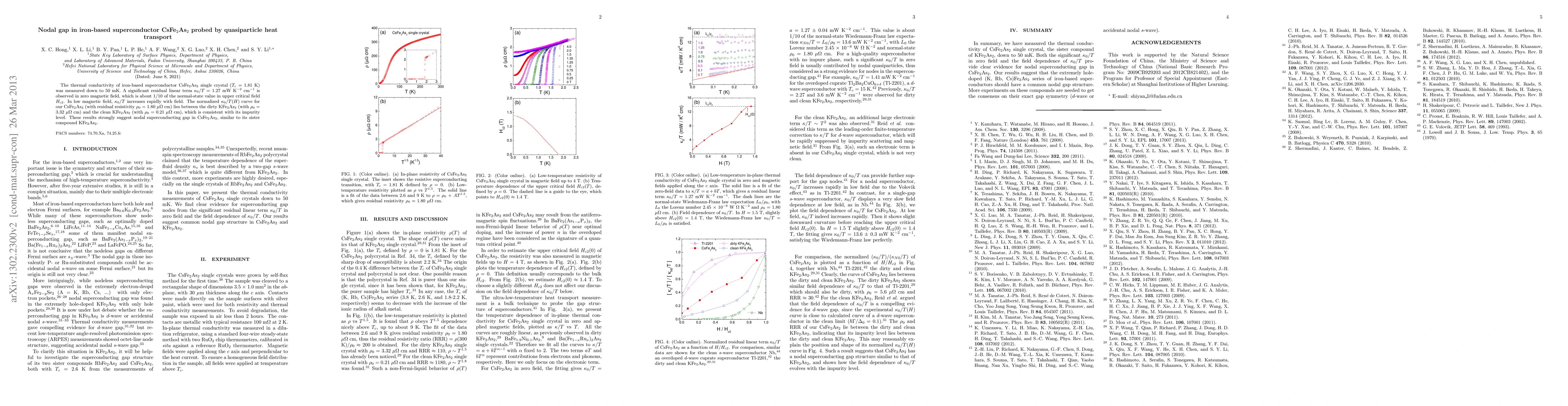 This study measures the thermal conductivity of CsFe$_2$As$_2$ superconductor down to 50 mK, revealing a significant residual linear thermal conductivity term, suggesting a nodal gap in the superconducting state, similar to KFe$_2$As$_2$. The field dependence of thermal conductivity further supports this nodal gap structure.