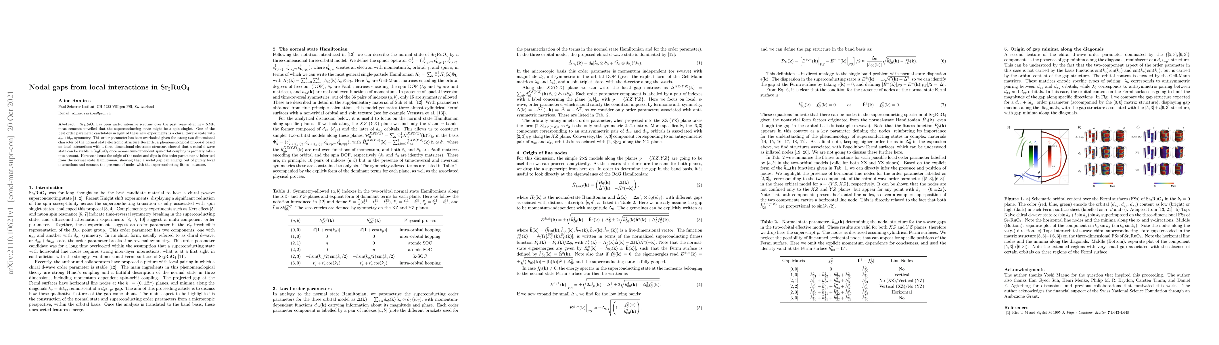Sr$_2$RuO$_4$ has been under intensive scrutiny over the past years after new NMR measurements unveiled that the superconducting state might be a spin singlet. One of the best order parameter candidates in light of these new experiments is a chiral d-wave state with $d_{xz}+id_{yz}$ symmetry. This order parameter has been overlooked given the strong two-dimensional character of the normal state electronic structure. Recently, a phenomenological proposal based on local interactions with a three-dimensional electronic structure showed that a chiral d-wave state can be stable in Sr$_2$RuO$_4$ once momentum-dependent spin-orbit coupling is properly taken into account. Here we discuss the origin of the nodes and dips in this order parameter as inherited from the normal state Hamiltonian, showing that a nodal gap can emerge out of purely local interactions and connect the presence of nodes with the superconducting fitness measure.