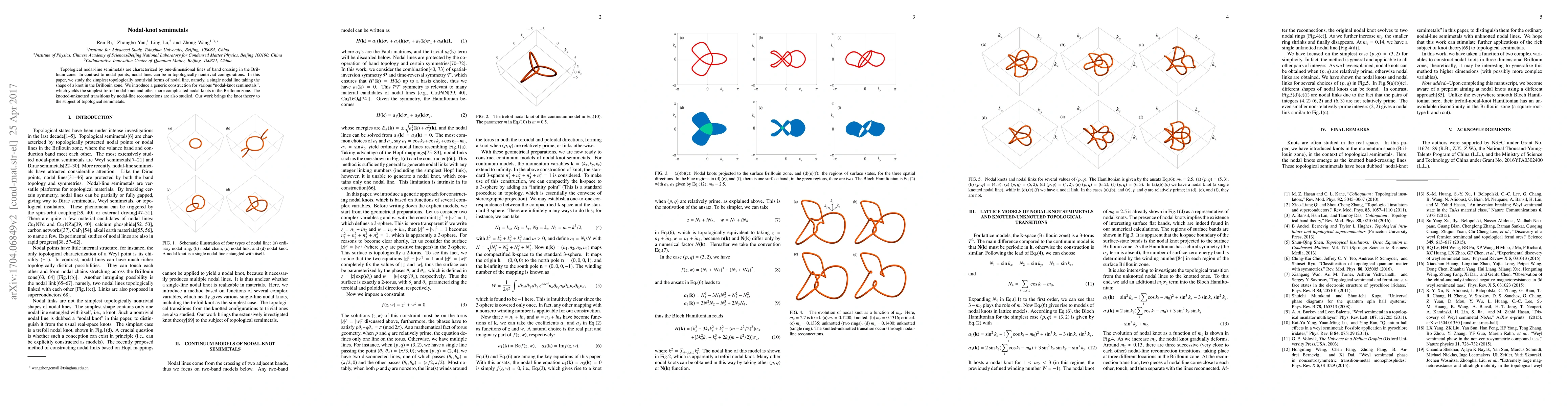 This paper explores topological nodal-line semimetals featuring one-dimensional band crossings shaped as knots in the Brillouin zone, introducing constructions for various nodal-knot semimetals, including the simplest trefoil knot. It also investigates knotted-unknotted transitions through nodal-line reconnections, integrating knot theory into topological semimetals.