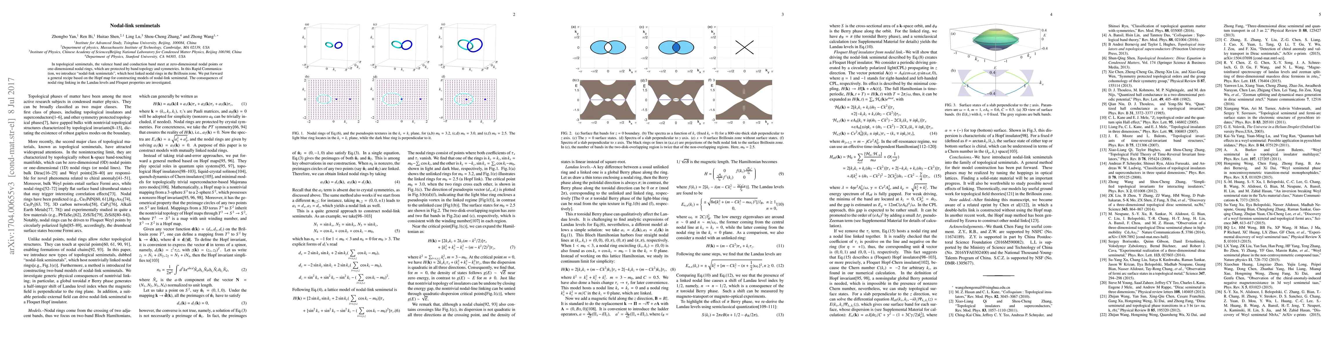 This paper introduces "nodal-link semimetals," characterized by linked nodal rings in their Brillouin zone, protected by band topology and symmetries. A methodology based on the Hopf map is proposed to construct such models, with an exploration of the implications for Landau levels and Floquet properties.
