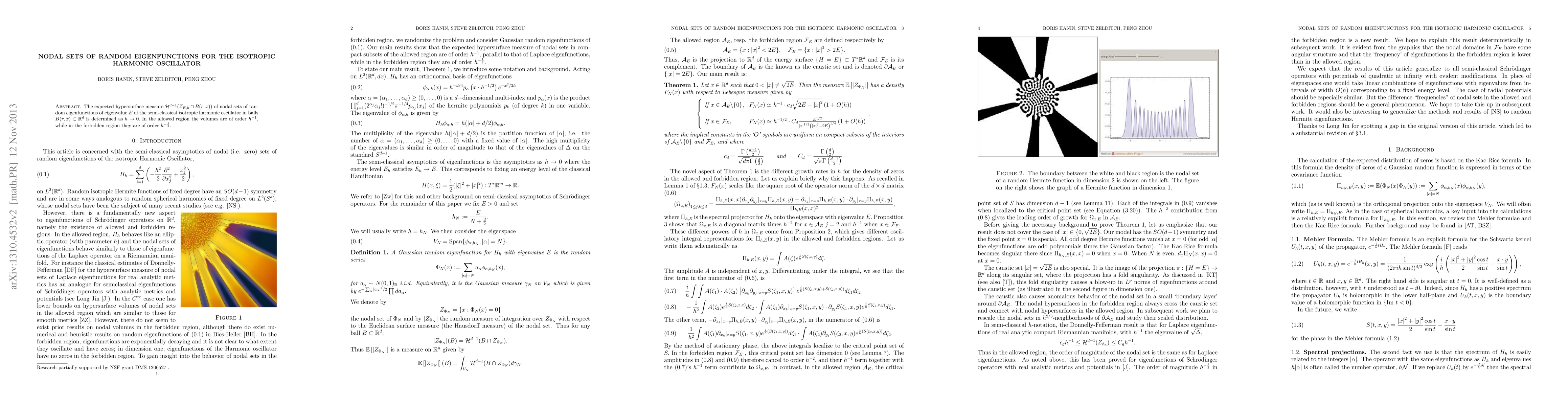 This paper investigates the nodal sets of Gaussian random eigenfunctions for the isotropic harmonic oscillator, finding that the expected density of zeros is $h^{-1}$ in allowed regions and $h^{-\frac{1}{2}}$ in forbidden regions as $h \to 0$. Computer graphics by E.J. Heller visually demonstrate the differing "frequency" of nodal sets in these regions.