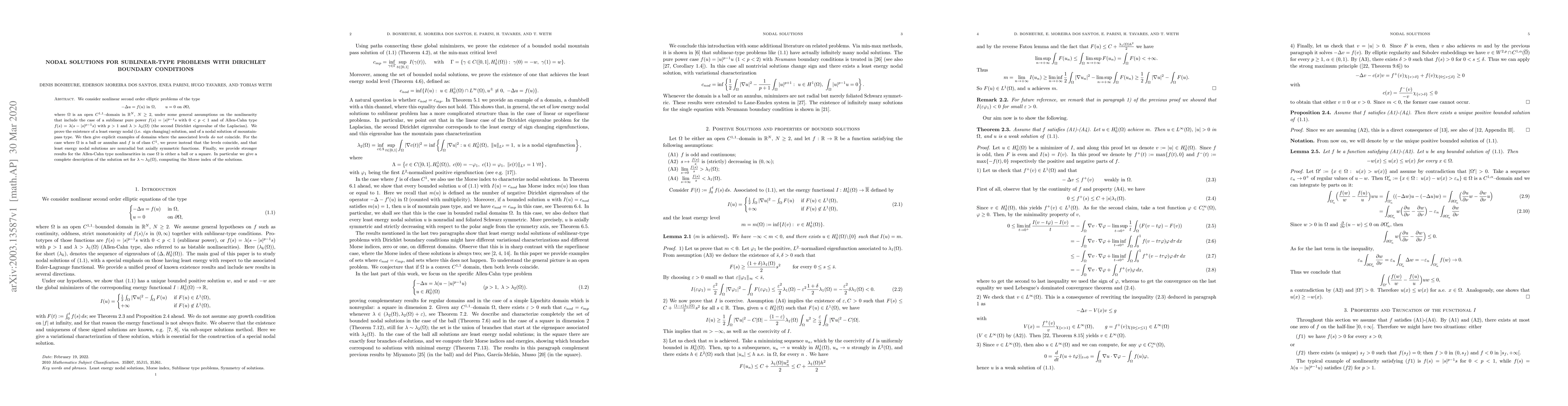 This paper establishes the existence of nodal solutions for certain nonlinear second-order elliptic problems with Dirichlet boundary conditions, including sublinear-type problems.