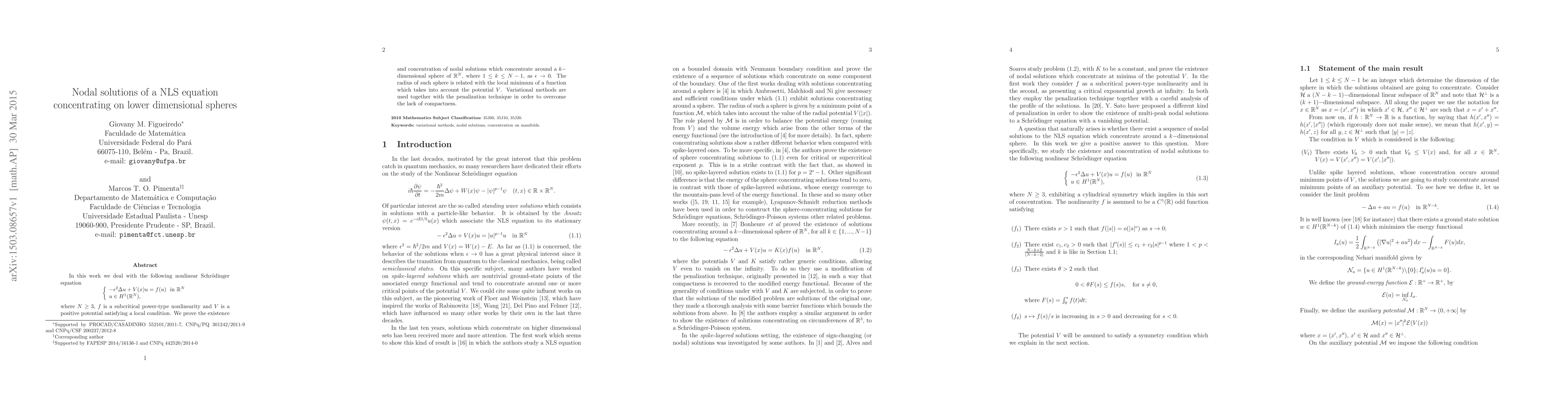 This paper proves the existence of nodal solutions to a nonlinear Schrodinger equation that concentrate on lower-dimensional spheres as a parameter approaches 0, with implications for understanding concentration patterns in these equations.