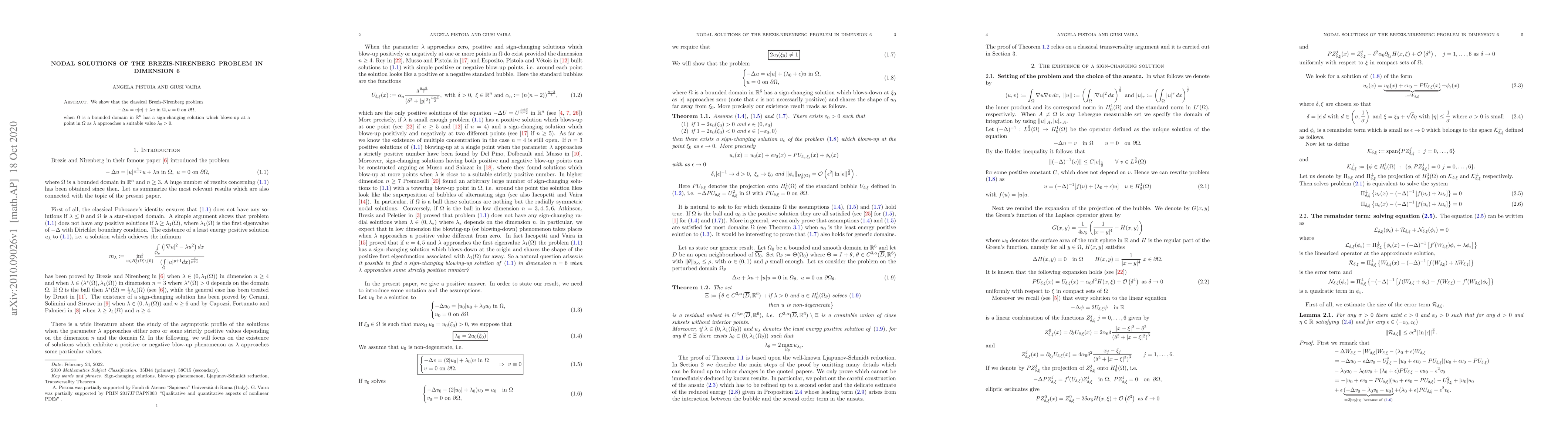 This paper demonstrates the existence of a sign-changing solution to the Brezis-Nirenberg problem in dimension 6, which exhibits a blow-up behavior at a specific point within the domain as the parameter λ approaches a critical value λ₀.