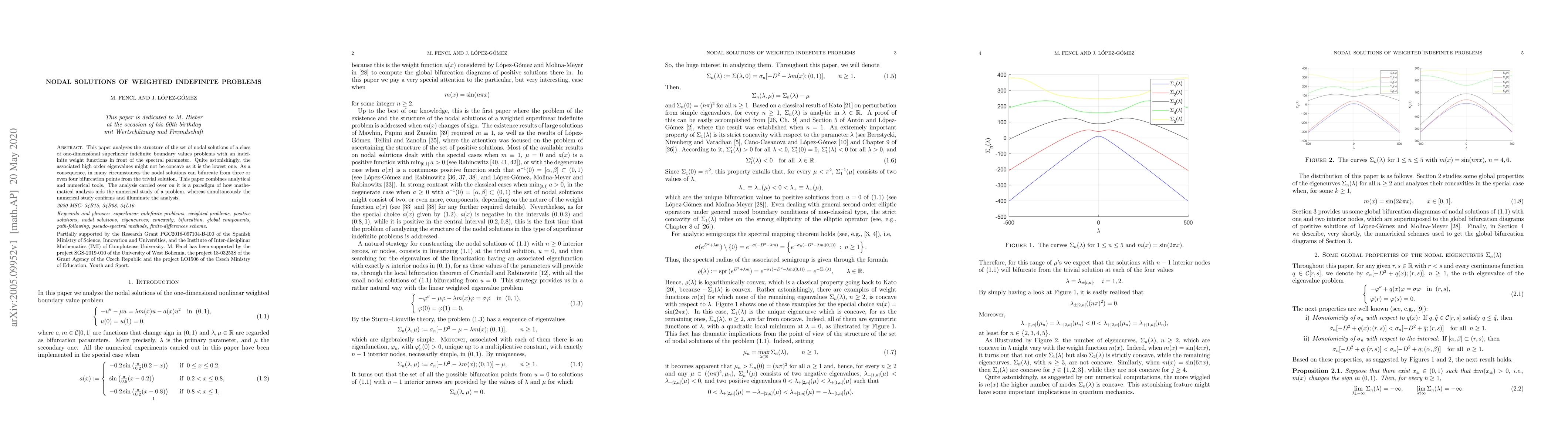 Researchers analyzed nodal solutions of a class of one-dimensional problems with weighted spectral parameters, finding that they can bifurcate from multiple points, leading to complex behavior in the solution set.