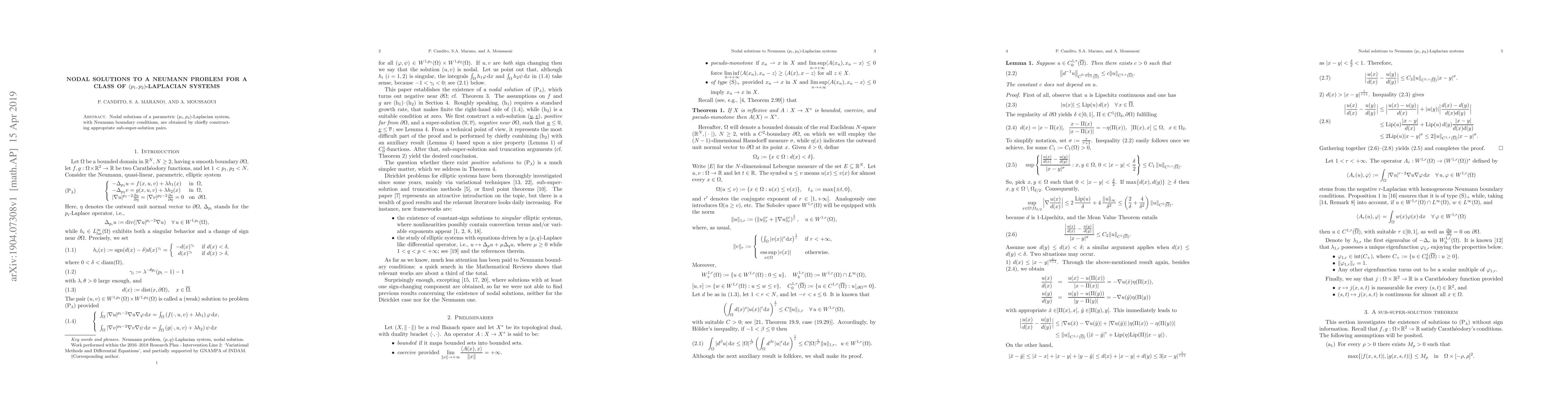 Nodal solutions of a parametric (p_1,p_2)-Laplacian system, with Neumann boundary conditions, are obtained by chiefly constructing appropriate sub-super-solution pairs.