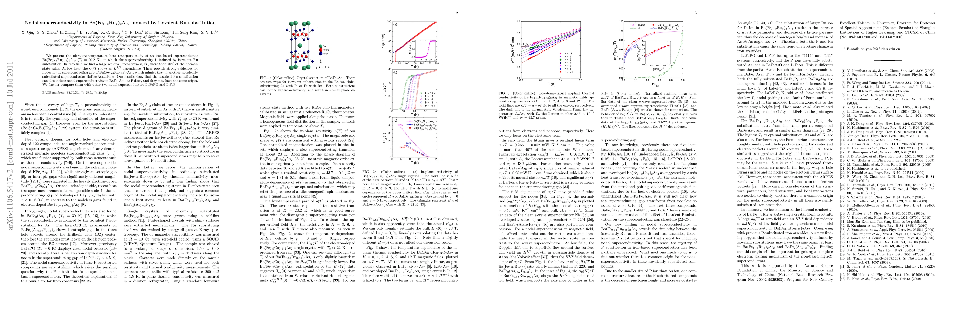 This study investigates Ba(Fe$_{0.64}$Ru$_{0.36}$)$_2$As$_2$, an iron-based superconductor with isovalent Ru substitution, revealing nodal superconductivity evidenced by a large residual linear heat transport term and $H^{1/2}$ dependence at low fields. The findings suggest a similar gap structure to other isovalent substitutions like P in BaFe$_2$As$_2$.