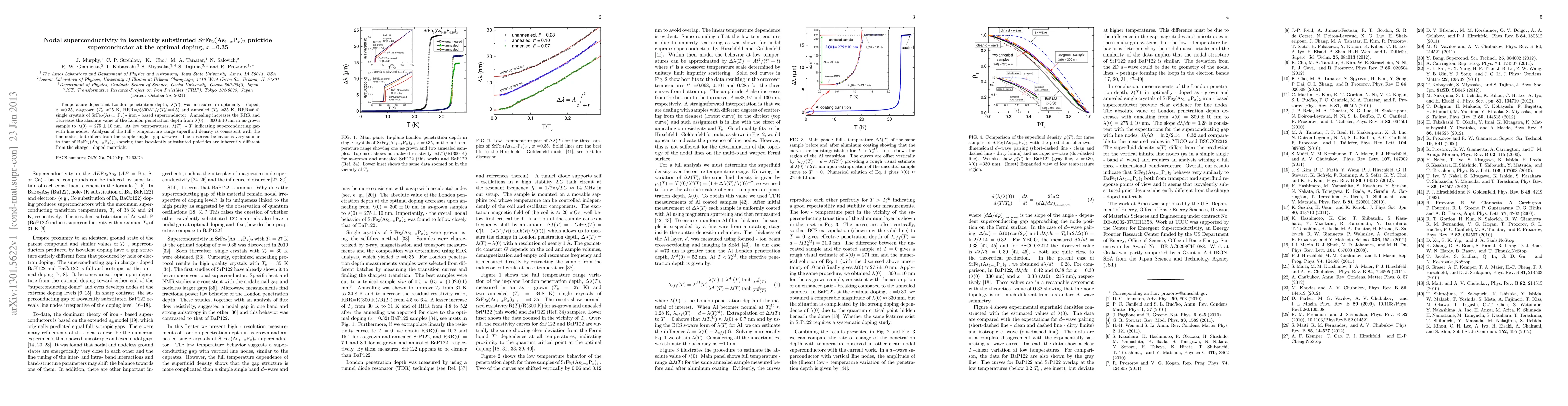 This study investigates optimally doped SrFe$_2$(As$_{1-x}$P$_{x}$)$_2$ pnictide superconductors, finding that annealing enhances the residual resistance ratio and reduces the London penetration depth. The temperature dependence of $\lambda(T)$ suggests a superconducting gap with line nodes, indicating nodal superconductivity similar to BaFe$_2$(As$_{1-x}$P$_{x}$)$_2$ and distinguishing it from charge-doped materials.
