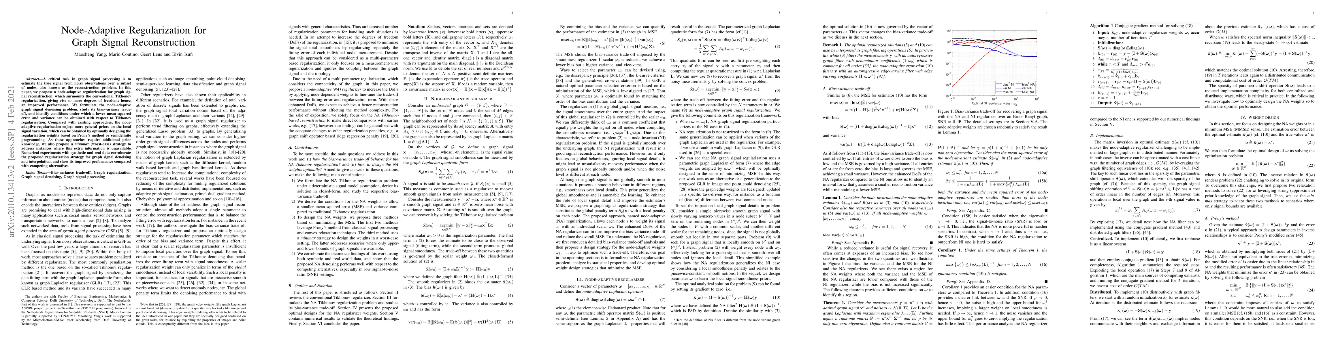 This paper proposes a node-adaptive regularization method for graph signal reconstruction, outperforming conventional Tikhonov regularization. It introduces optimal regularization weights based on Prony's method or semidefinite programming, and a minimax strategy for scenarios lacking additional prior knowledge, demonstrating superior performance in numerical experiments.