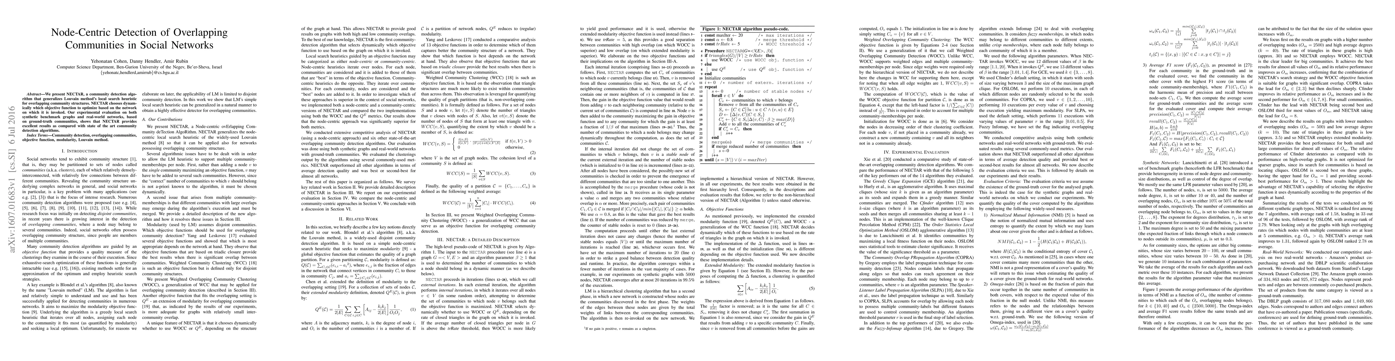 We present NECTAR, a community detection algorithm that generalizes Louvain method's local search heuristic for overlapping community structures. NECTAR chooses dynamically which objective function to optimize based on the network on which it is invoked. Our experimental evaluation on both synthetic benchmark graphs and real-world networks, based on ground-truth communities, shows that NECTAR provides excellent results as compared with state of the art community detection algorithms.