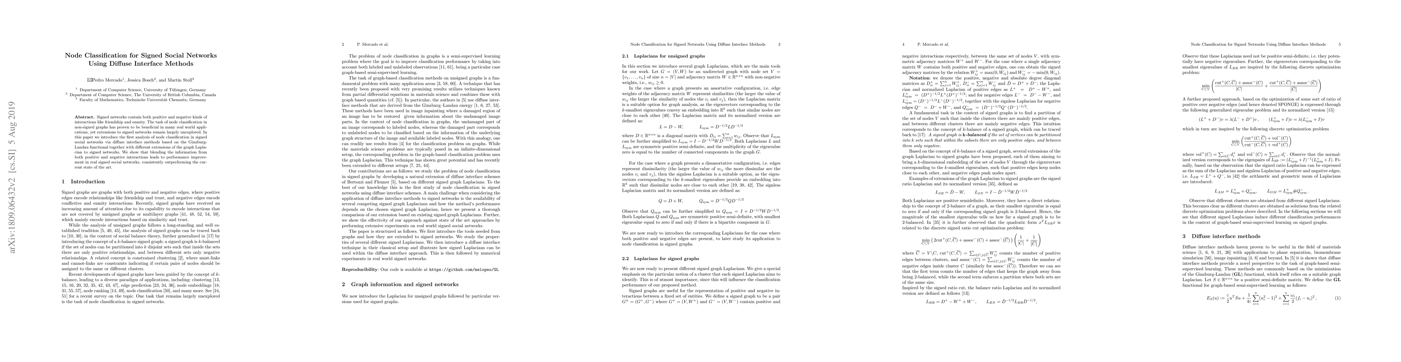 This paper introduces a method for node classification in signed social networks using diffuse interface methods, showing improved performance over current state-of-the-art methods in real-world applications.
