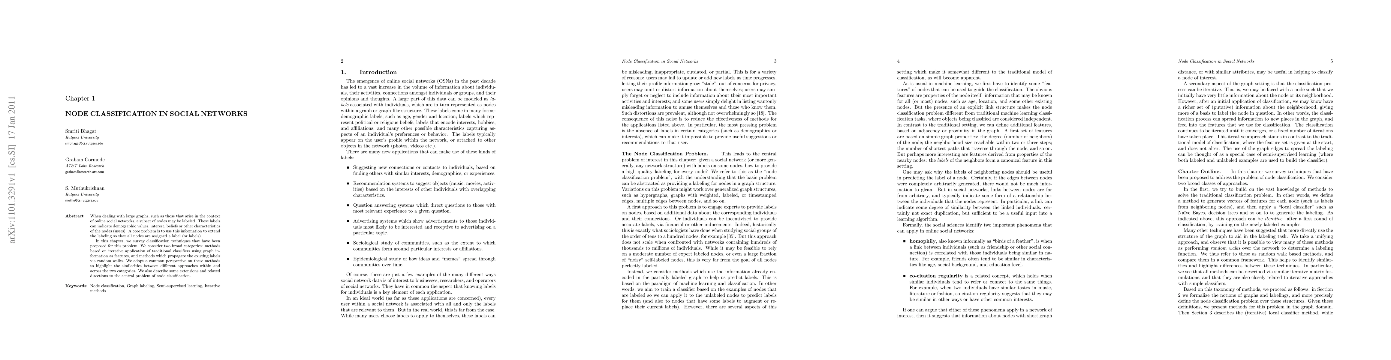 This paper surveys methods for extending labels from a subset of nodes to all nodes in large social networks, using techniques such as iterative classification and label propagation via random walks.