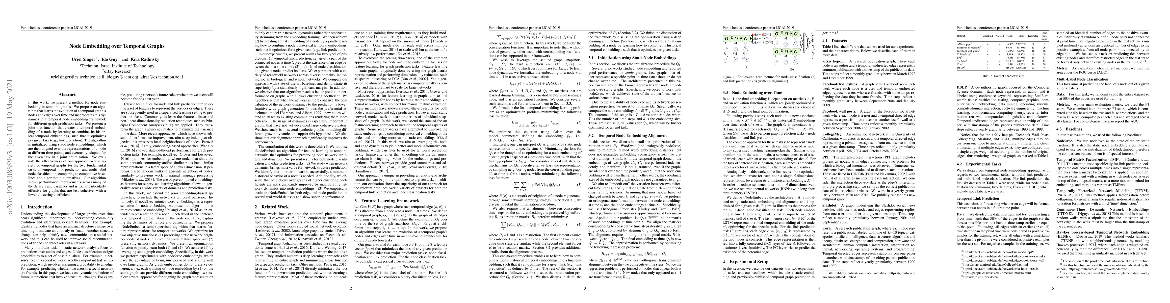 This paper introduces a method for node embedding in temporal graphs that captures the evolution of nodes and edges over time. The proposed algorithm optimizes a joint loss function to create temporal embeddings, showing improved performance in temporal link prediction and multi-label node classification tasks compared to baselines.