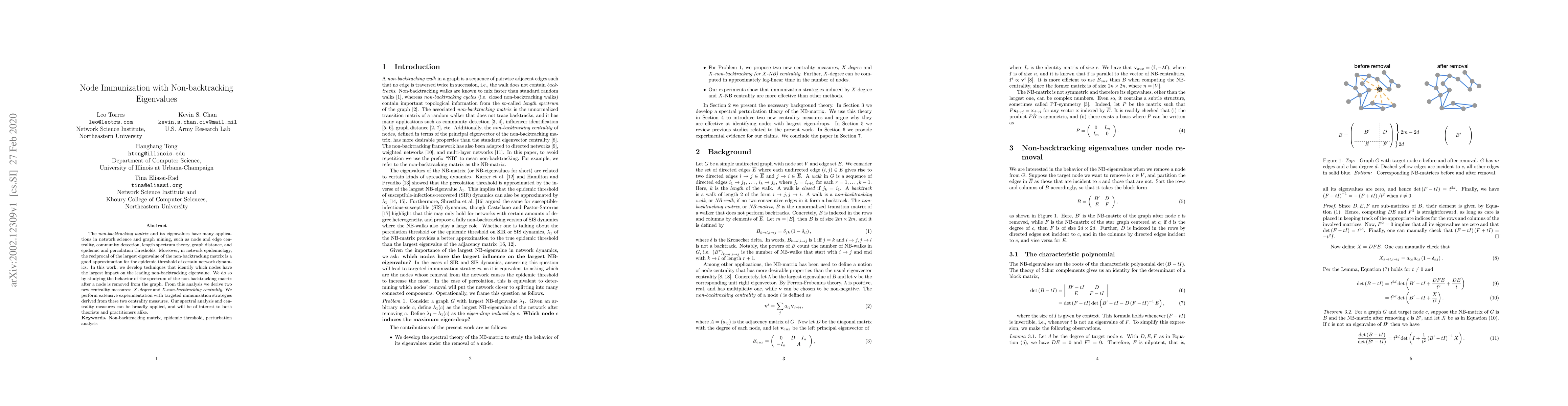The non-backtracking matrix and its eigenvalues have many applications in network science and graph mining, such as node and edge centrality, community detection, length spectrum theory, graph distance, and epidemic and percolation thresholds. Moreover, in network epidemiology, the reciprocal of the largest eigenvalue of the non-backtracking matrix is a good approximation for the epidemic threshold of certain network dynamics. In this work, we develop techniques that identify which nodes have the largest impact on the leading non-backtracking eigenvalue. We do so by studying the behavior of the spectrum of the non-backtracking matrix after a node is removed from the graph. From this analysis we derive two new centrality measures: X-degree and X-non-backtracking centrality. We perform extensive experimentation with targeted immunization strategies derived from these two centrality measures. Our spectral analysis and centrality measures can be broadly applied, and will be of interest to both theorists and practitioners alike.