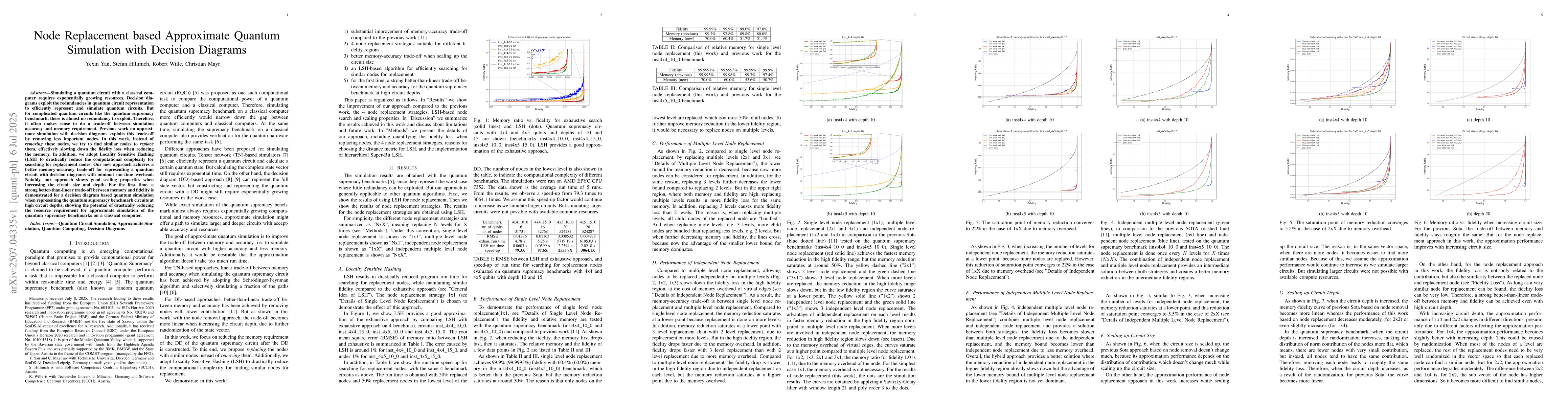 Simulating a quantum circuit with a classical computer requires exponentially growing resources. Decision diagrams exploit the redundancies in quantum circuit representation to efficiently represent and simulate quantum circuits. But for complicated quantum circuits like the quantum supremacy benchmark, there is almost no redundancy to exploit. Therefore, it often makes sense to do a trade-off between simulation accuracy and memory requirement. Previous work on approximate simulation with decision diagrams exploits this trade-off by removing less important nodes. In this work, instead of removing these nodes, we try to find similar nodes to replace them, effectively slowing down the fidelity loss when reducing the memory. In addition, we adopt Locality Sensitive Hashing (LSH) to drastically reduce the computational complexity for searching for replacement nodes. Our new approach achieves a better memory-accuracy trade-off for representing a quantum circuit with decision diagrams with minimal run time overhead. Notably, our approach shows good scaling properties when increasing the circuit size and depth. For the first time, a strong better-than-linear trade-off between memory and fidelity is demonstrated for a decision diagram based quantum simulation when representing the quantum supremacy benchmark circuits at high circuit depths, showing the potential of drastically reducing the resource requirement for approximate simulation of the quantum supremacy benchmarks on a classical computer.