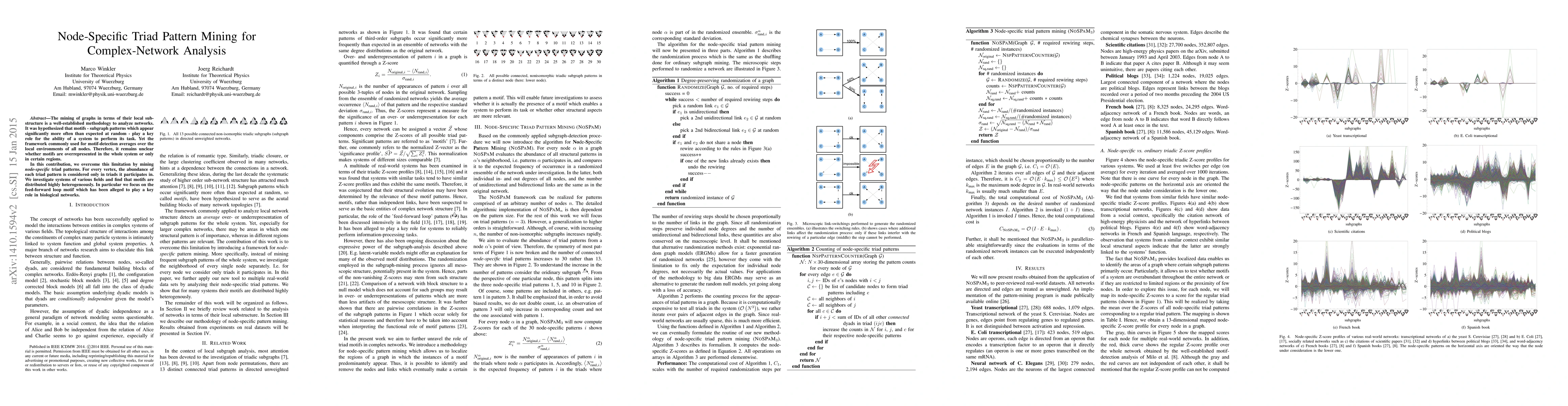 This paper proposes a method for node-specific triad pattern mining to analyze complex networks, focusing on local subgraph structures rather than global averages. It reveals heterogeneous distributions of motifs, particularly the feed-forward loop motif, across different regions of various systems, highlighting their potential significance in biological networks.