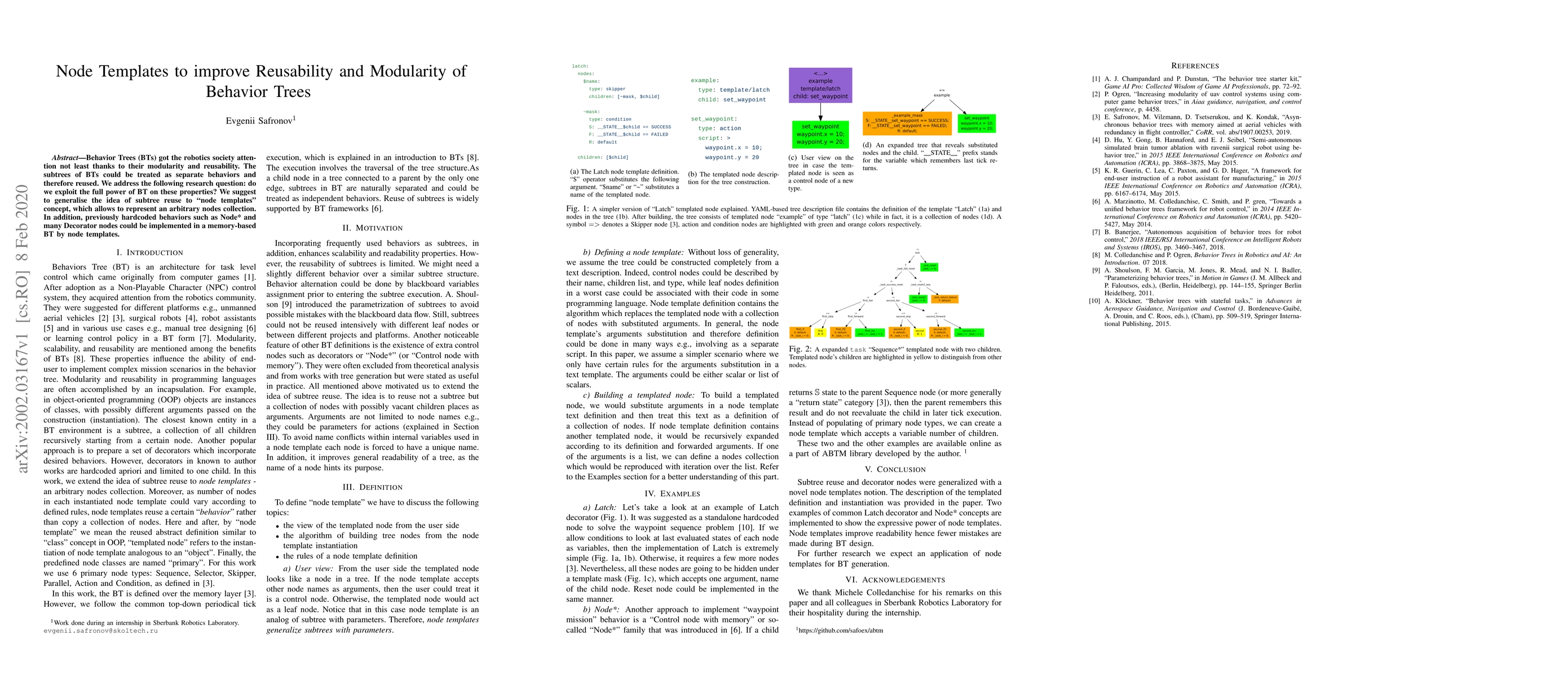 Researchers introduced a new concept called node templates to improve reusability and modularity in behavior trees, allowing for more flexible reuse of subtrees and previously hardcoded behaviors.