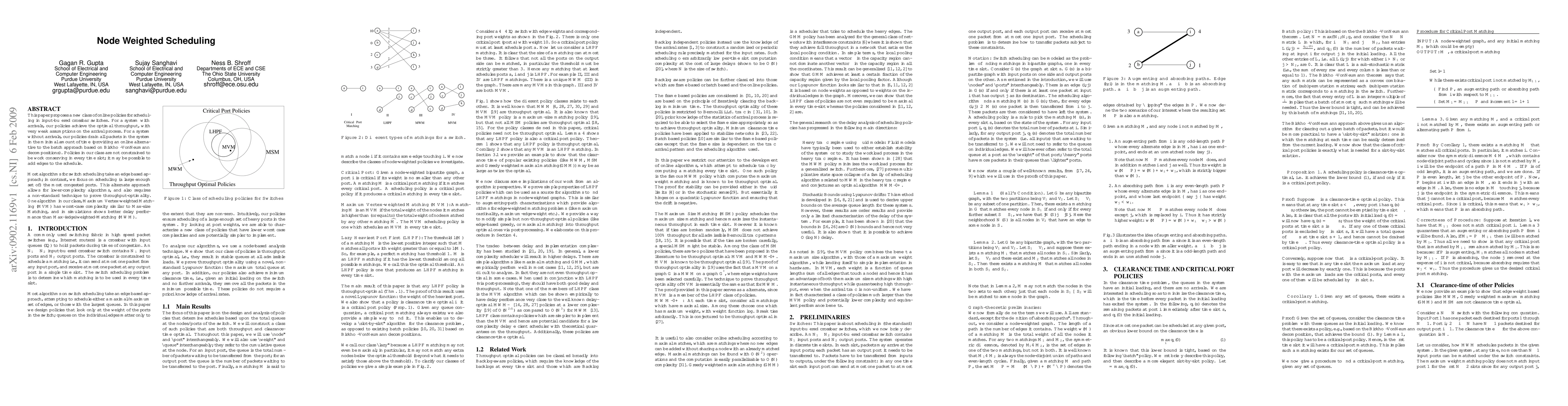 This paper proposes a new class of online policies for scheduling in input-buffered crossbar switches. Our policies are throughput optimal for a large class of arrival processes which satisfy strong-law of large numbers. Given an initial configuration and no further arrivals, our policies drain all packets in the system in the minimal amount of time (providing an online alternative to the batch approach based on Birkhoff-VonNeumann decompositions). We show that it is possible for policies in our class to be throughput optimal even if they are not constrained to be maximal in every time slot. Most algorithms for switch scheduling take an edge based approach; in contrast, we focus on scheduling (a large enough set of) the most congested ports. This alternate approach allows for lower-complexity algorithms, and also requires a non-standard technique to prove throughput-optimality. One algorithm in our class, Maximum Vertex-weighted Matching (MVM) has worst-case complexity similar to Max-size Matching, and in simulations shows slightly better delay performance than Max-(edge)weighted-Matching (MWM).