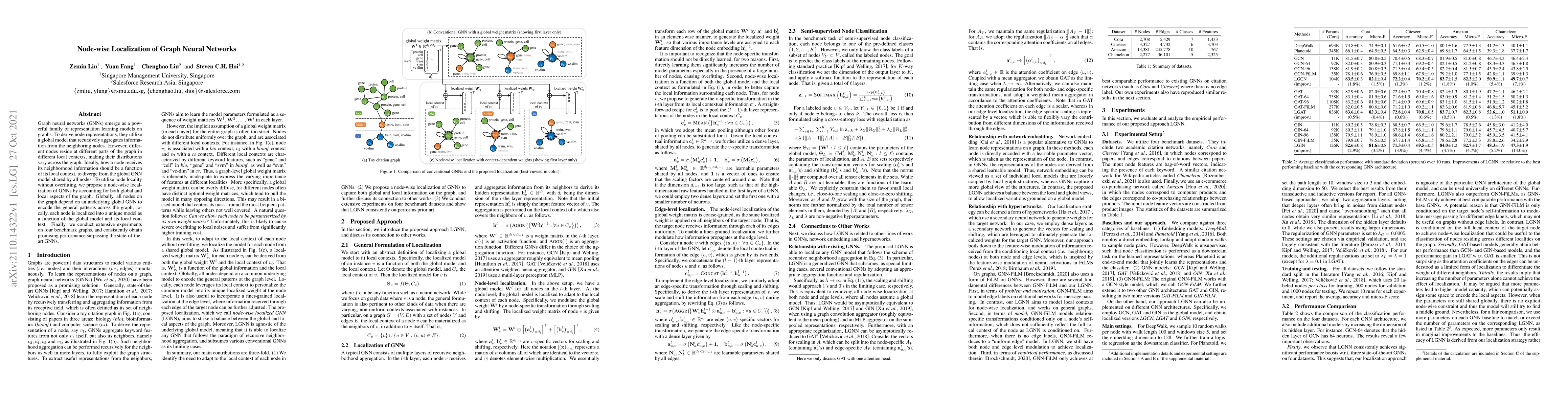 Graph neural networks (GNNs) emerge as a powerful family of representation learning models on graphs. To derive node representations, they utilize a global model that recursively aggregates information from the neighboring nodes. However, different nodes reside at different parts of the graph in different local contexts, making their distributions vary across the graph. Ideally, how a node receives its neighborhood information should be a function of its local context, to diverge from the global GNN model shared by all nodes. To utilize node locality without overfitting, we propose a node-wise localization of GNNs by accounting for both global and local aspects of the graph. Globally, all nodes on the graph depend on an underlying global GNN to encode the general patterns across the graph; locally, each node is localized into a unique model as a function of the global model and its local context. Finally, we conduct extensive experiments on four benchmark graphs, and consistently obtain promising performance surpassing the state-of-the-art GNNs.
