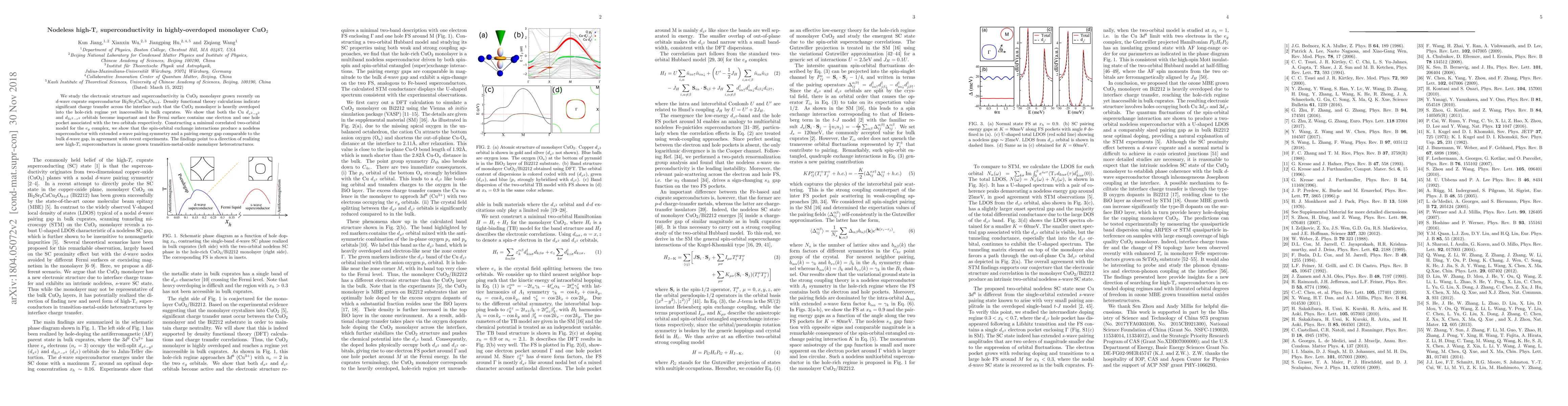 This paper investigates the electronic structure and superconductivity in highly overdoped CuO$_2$ monolayers grown on a $d$-wave cuprate superconductor, revealing a nodeless high-$T_c$ superconductivity with extended $s$-wave pairing symmetry, suggesting potential for new high-$T_c$ superconductors in transition-metal-oxide monolayer heterostructures.