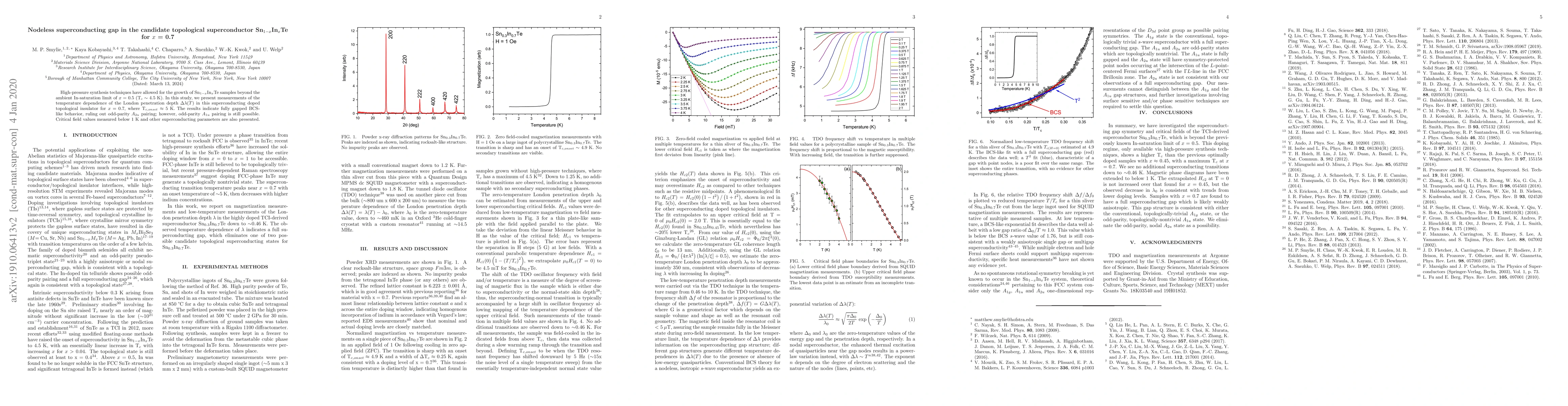 Researchers found that Sn$_{1-x}$In$_x$Te exhibits fully gapped BCS-like superconducting behavior with onset temperature around 5 K, ruling out odd-parity A$_2u$ pairing but leaving room for odd-parity A$_1u$ pairing.