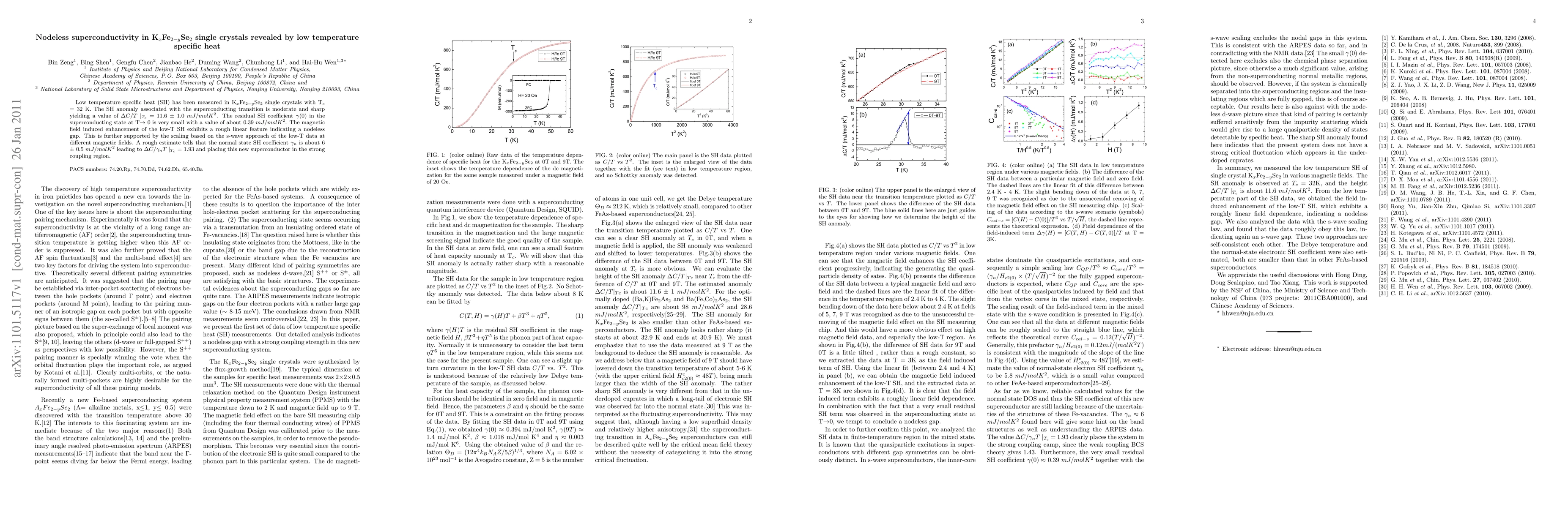 Researchers discovered nodeless superconductivity in KxFe2-ySe2 single crystals at 32K, characterized by a moderate and sharp superconducting transition with a small residual heat capacity coefficient.