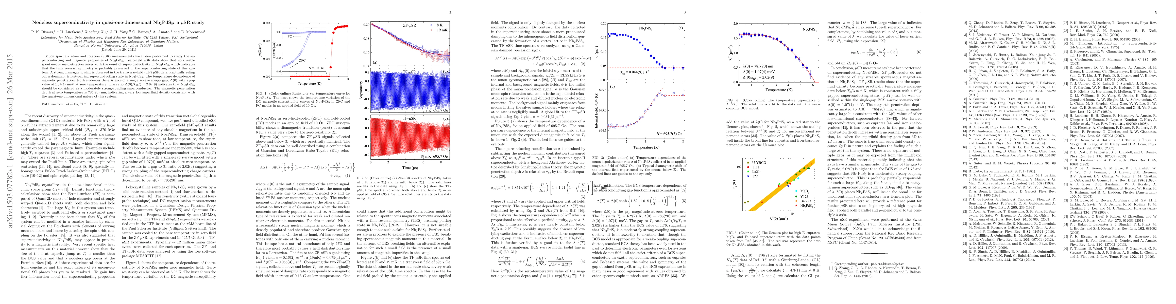 Muon spin relaxation and rotation (muSR) measurements have been performed to study the superconducting and magnetic properties of Nb2PdS5. Zero-field muSR data show that no sizeable spontaneous magnetization arises with the onset of superconductivity in Nb2PdS5 which indicates that the time reversal symmetry is probably preserved in the superconducting state of this system. A strong diamagnetic shift is observed in the transverse-field muSR data practically ruling out a dominant triplet-pairing superconducting state in Nb2PdS5. The temperature dependence of magnetic penetration depth evidences the existence of a single s-wave energy gap with a gap value of 1.07(4) meV at zero temperature. The gap to Tc ratio, 2.02(9), indicates that Nb2PdS5 should be considered as a moderately strong-coupling superconductor. The magnetic penetration depth at zero temperature is 785(20) nm, indicating a very low superfluid density consistent with the quasi-one-dimensional nature of this system.