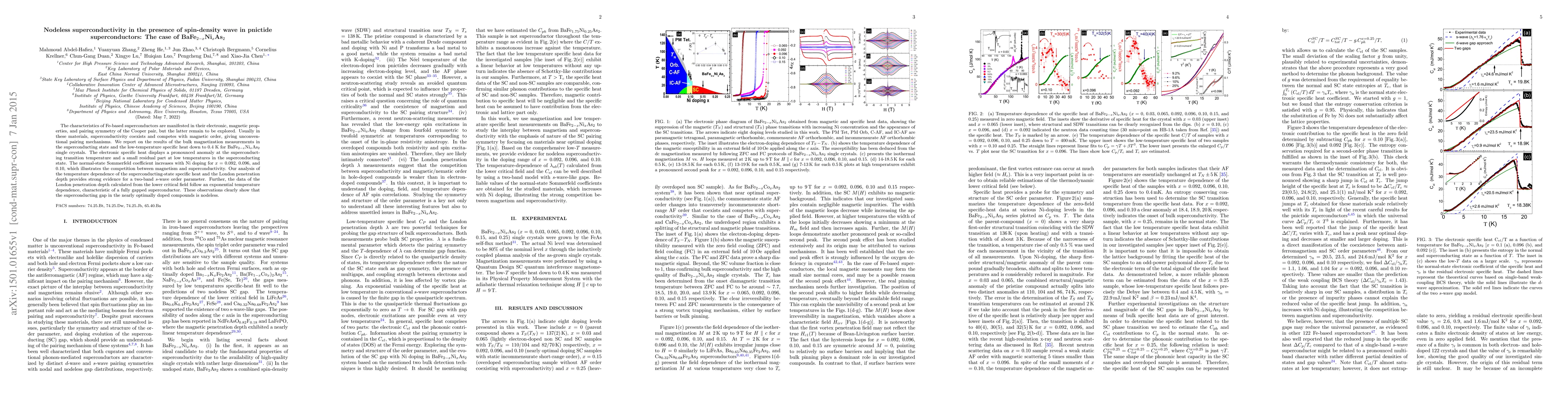 This paper investigates the coexistence of superconductivity and spin-density wave in BaFe$_{2-x}$Ni$_{x}$As$_{2}$ pnictide superconductors, revealing a two-band $s$-wave pairing mechanism with a fully gapped, nodeless superconducting gap through magnetization and specific heat measurements.