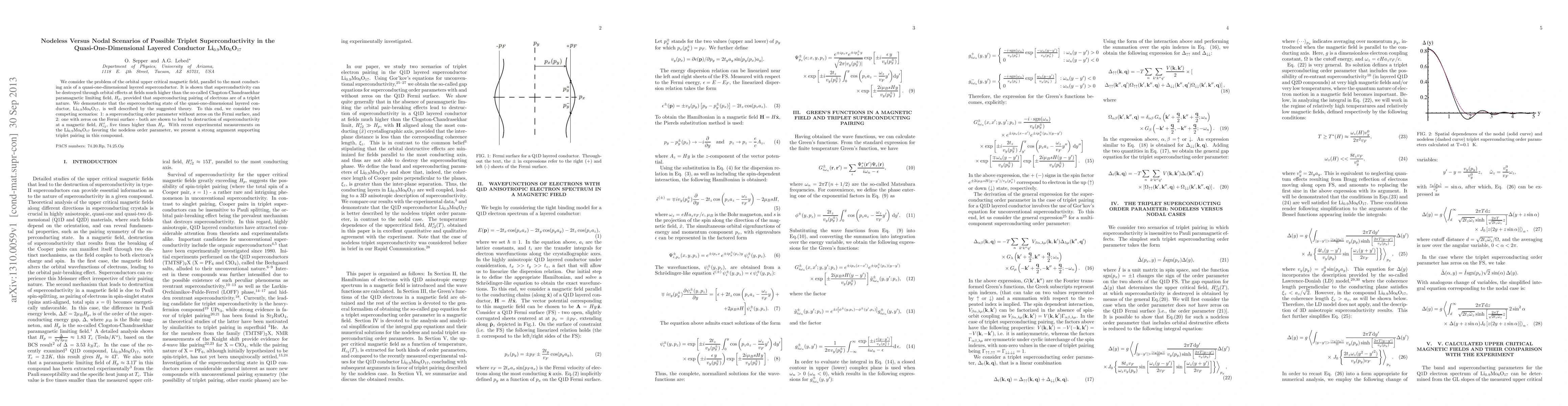 This research explores the upper critical magnetic field in quasi-one-dimensional superconductor $\mathrm{Li_{0.9}Mo_6O_{17}}$, demonstrating that triplet superconductivity can be destroyed at fields much higher than the paramagnetic limit. It supports the nodeless scenario for the superconducting order parameter, providing evidence for triplet pairing in the material.
