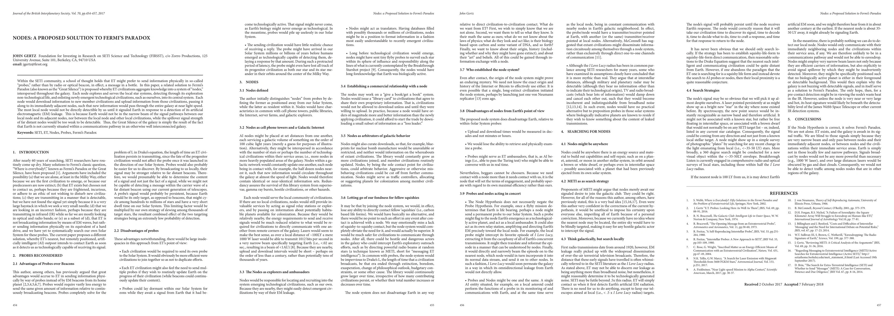 This paper proposes a solution to Fermi's Paradox by suggesting that extraterrestrial civilizations create "nodes" throughout the galaxy to disseminate knowledge. These nodes remain undetectable until they signal Earth in response to detecting artificial electromagnetic leakage, explaining the "Great Silence" as Earth's current non-participation in these pathways.