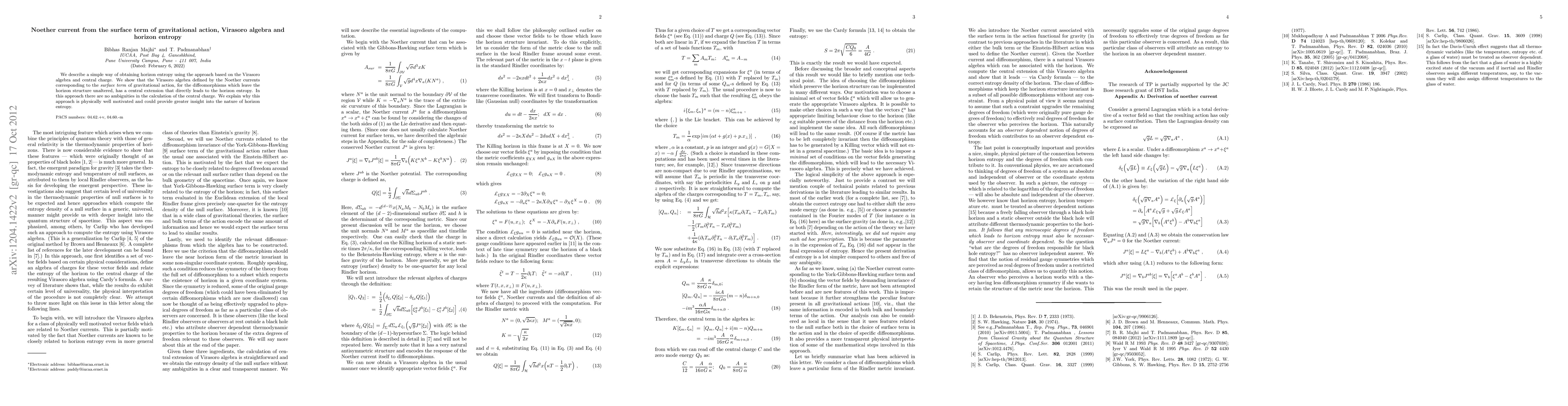 We describe a simple way of obtaining horizon entropy using the approach based on the Virasoro algebra and central charge. We show that the Virasoro algebra defined by the Noether currents corresponding to the surface term of gravitational action, for the diffeomorphisms which leave the horizon structure unaltered, has a central extension that directly leads to the horizon entropy. In this approach there are no ambiguities in the calculation of the central charge. We explain why this approach is physically well motivated and could provide greater insight into the nature of horizon entropy.