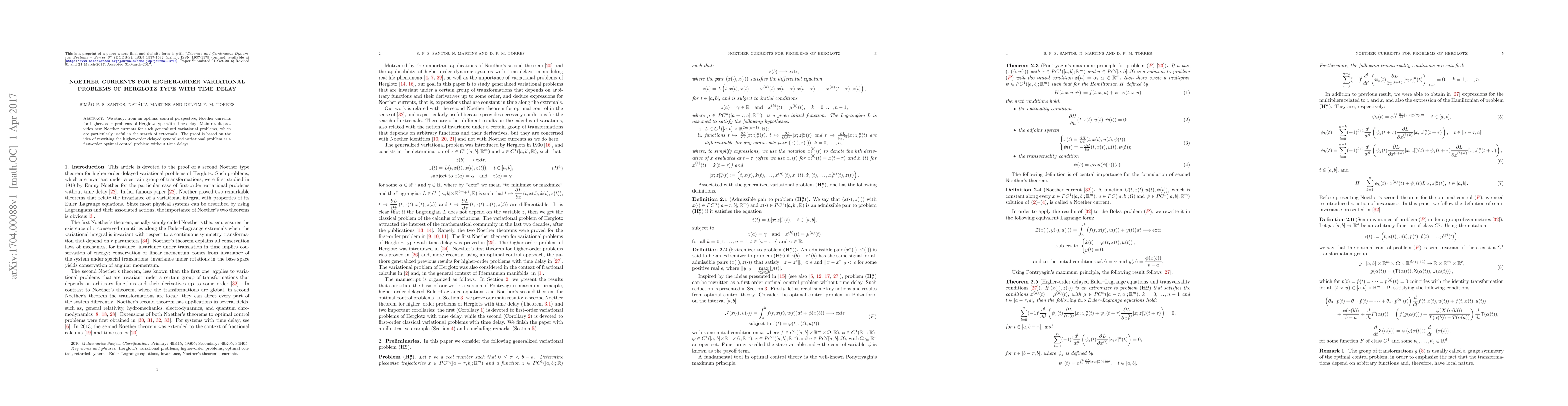 This paper develops new Noether currents for higher-order Herglotz variational problems with time delays, crucial for finding extremals. The authors achieve this by transforming the higher-order problem into a first-order optimal control problem without time delays.