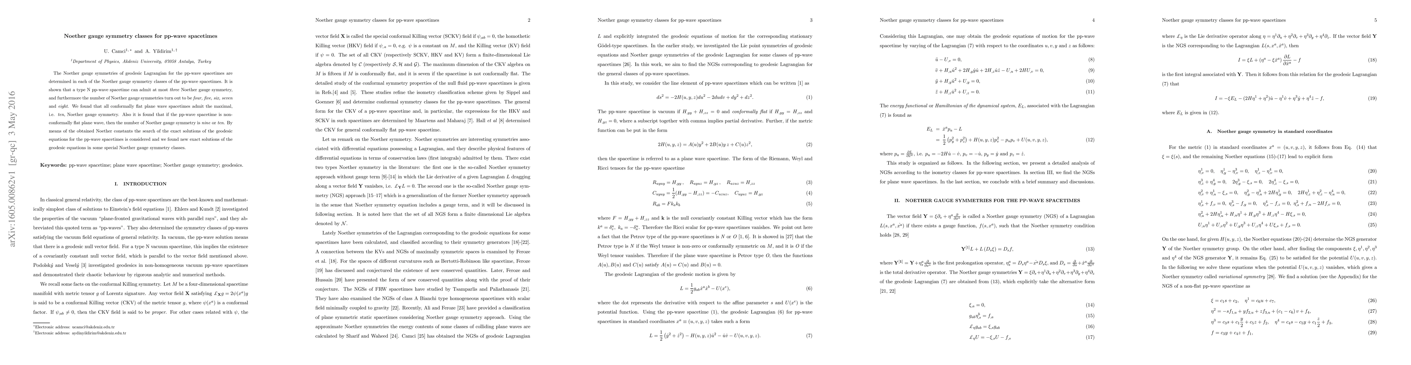 This paper investigates the Noether gauge symmetries of pp-wave spacetimes, determining that type N pp-waves can have up to eight symmetries, with conformally flat plane waves admitting the maximal ten symmetries. New exact solutions of geodesic equations are found using these symmetries.