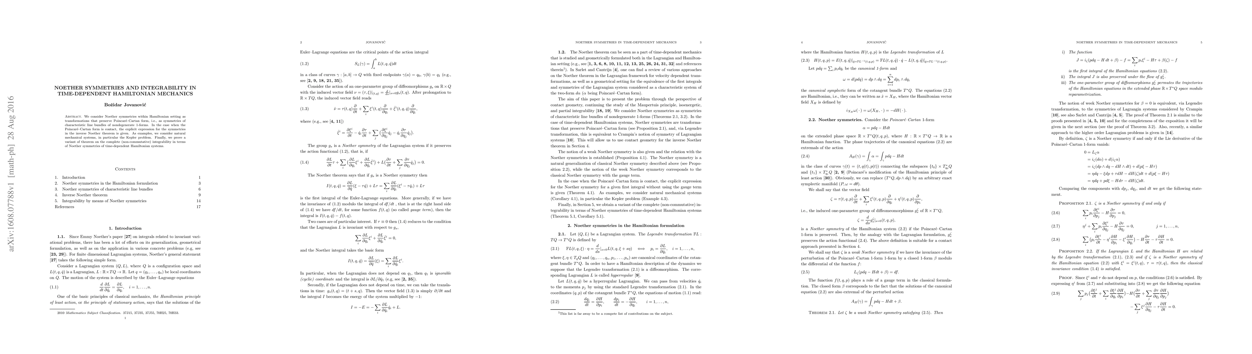 This paper explores Noether symmetries in Hamiltonian mechanics, focusing on transformations that preserve the Poincaré-Cartan form. It provides an explicit expression for these symmetries in the inverse Noether theorem and applies the theory to natural mechanical systems like the Kepler problem, concluding with a proof of a variant of the theorem on complete integrability linked to Noether symmetries in time-dependent Hamiltonian systems.