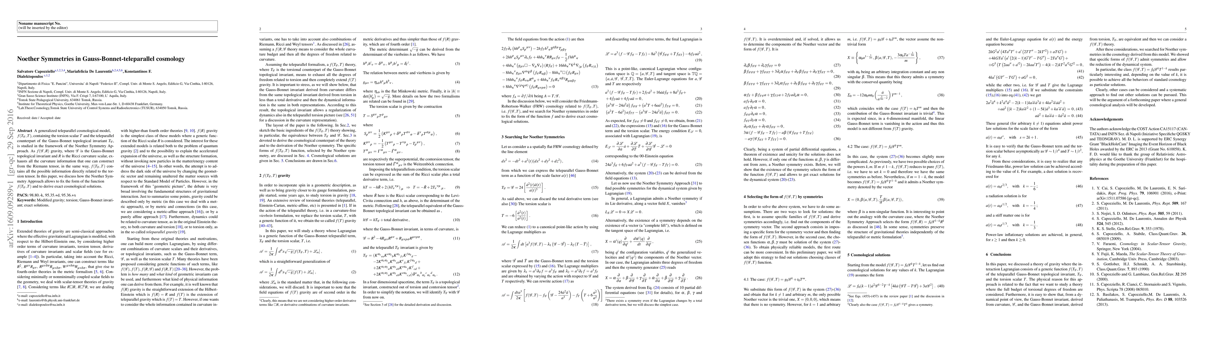 This paper explores a generalized teleparallel cosmological model incorporating the torsion scalar $T$ and the Gauss-Bonnet teleparallel invariant $T_{\mathcal{G}}$, using the Noether Symmetry Approach to determine the function $f(T_\mathcal{G},T)$ and derive exact cosmological solutions.