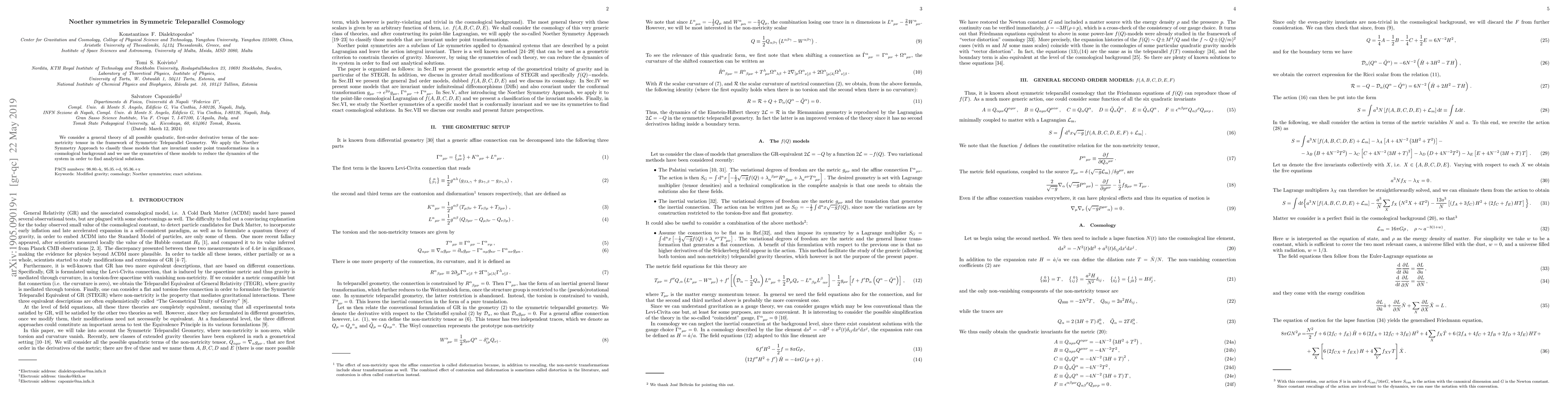 We consider a general theory of all possible quadratic, first-order derivative terms of the non-metricity tensor in the framework of Symmetric Teleparallel Geometry. We apply the Noether Symmetry Approach to classify those models that are invariant under point transformations in a cosmological background and we use the symmetries of these models to reduce the dynamics of the system in order to find analytical solutions.