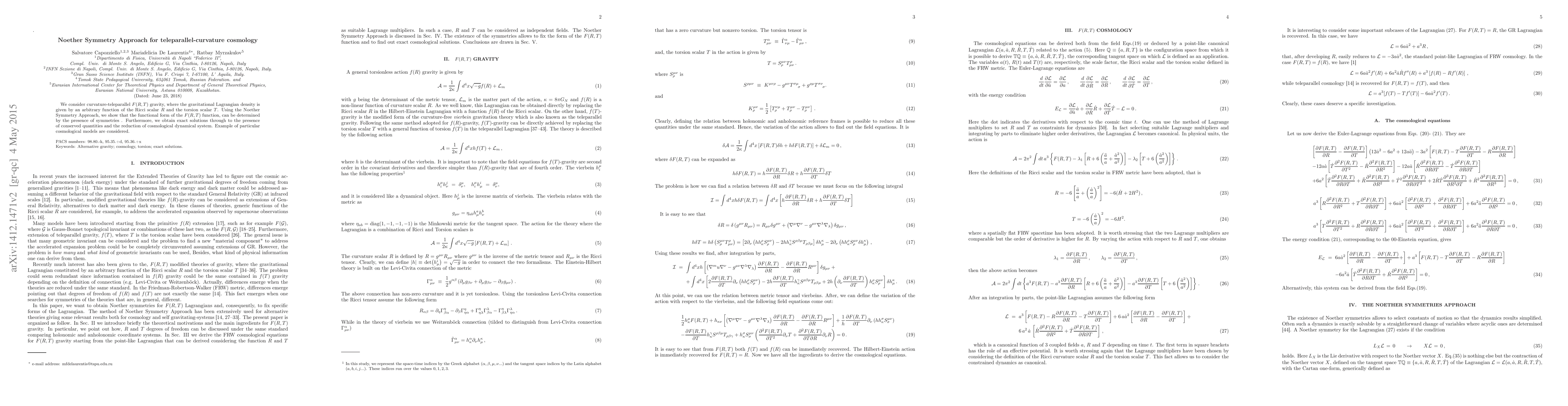 This paper employs the Noether Symmetry Approach to determine the functional form of $F(R, T)$ gravity in teleparallel-curvature cosmology, revealing how symmetries lead to conserved quantities and exact solutions for cosmological models.