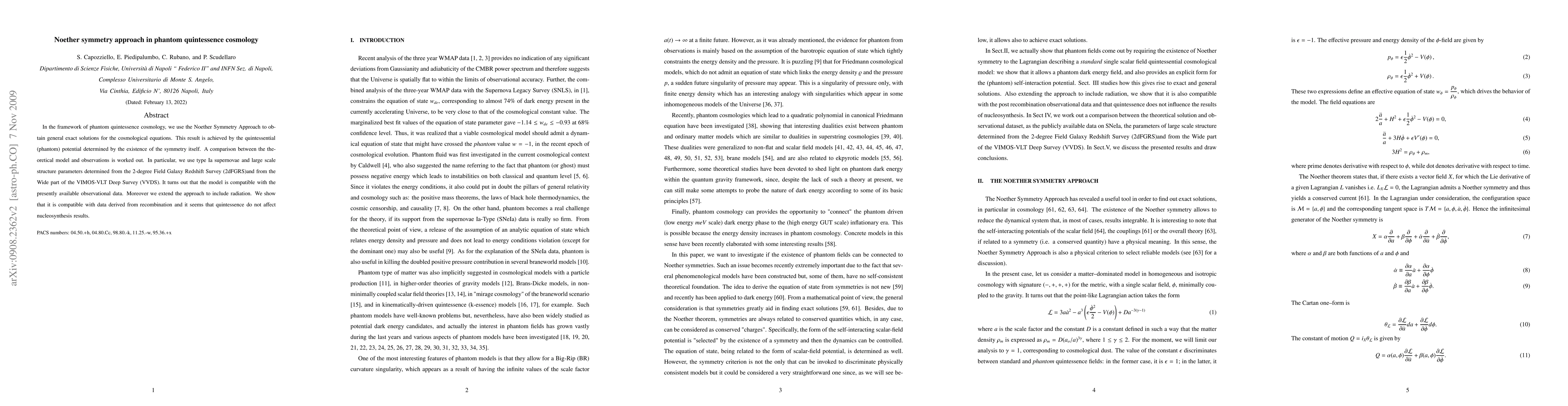This paper employs the Noether Symmetry Approach to derive exact solutions for phantom quintessence cosmology, demonstrating compatibility with observational data from type Ia supernovae and large scale structure surveys. The model also extends to include radiation, showing no adverse effects on nucleosynthesis results.