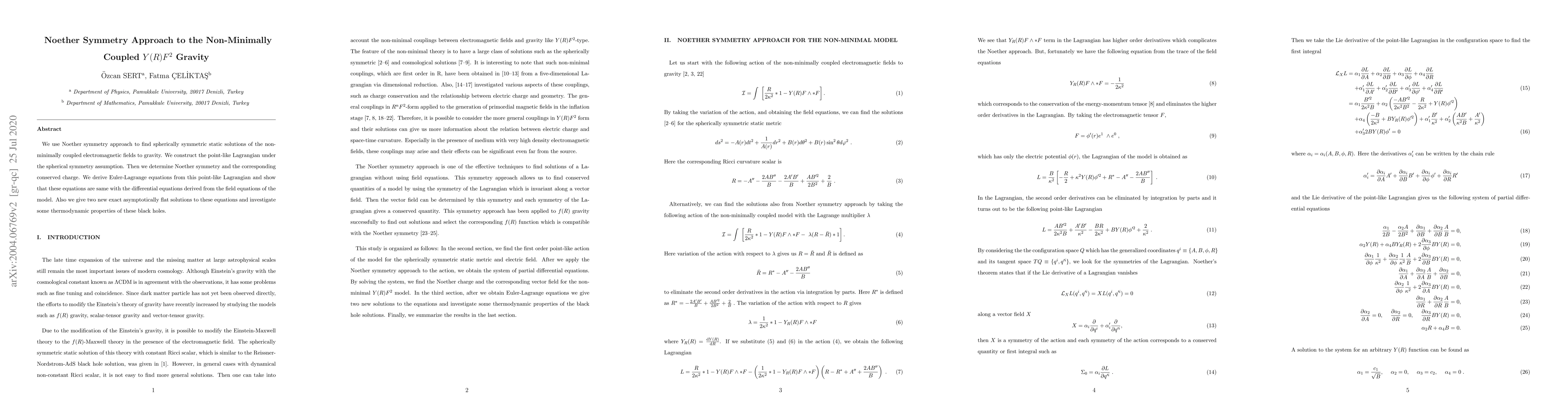 We use Noether symmetry approach to find spherically symmetric static solutions of the non-minimally coupled electromagnetic fields to gravity. We construct the point-like Lagrangian under the spherical symmetry assumption. Then we determine Noether symmetry and the corresponding conserved charge. We derive Euler-Lagrange equations from this point-like Lagrangian and show that these equations are same with the differential equations derived from the field equations of the model. Also we give two new exact asymptotically flat solutions to these equations and investigate some thermodynamic properties of these black holes.