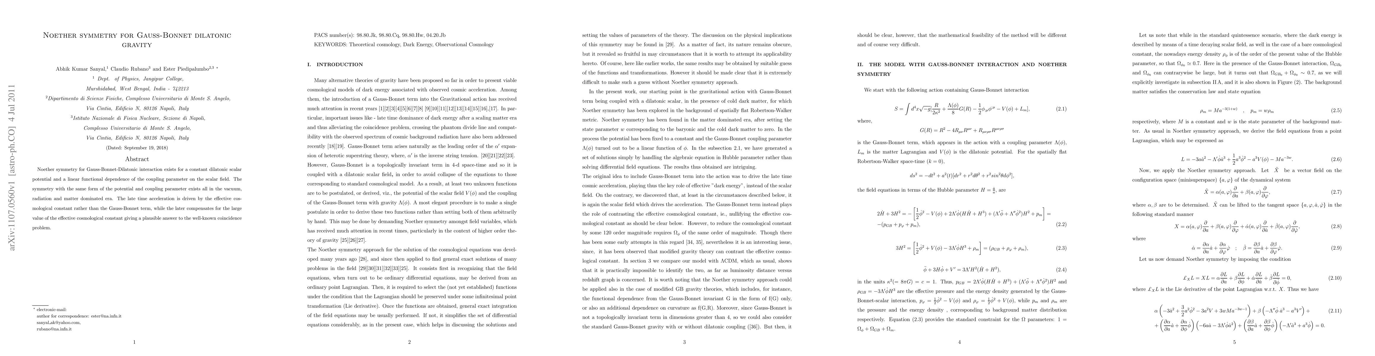 Noether symmetry for Gauss-Bonnet-Dilatonic interaction exists for a constant dilatonic scalar potential and a linear functional dependence of the coupling parameter on the scalar field. The symmetry with the same form of the potential and coupling parameter exists all in the vacuum, radiation and matter dominated era. The late time acceleration is driven by the effective cos- mological constant rather than the Gauss-Bonnet term, while the later compensates for the large value of the effective cosmological constant giving a plausible answer to the well-known coincidence problem.