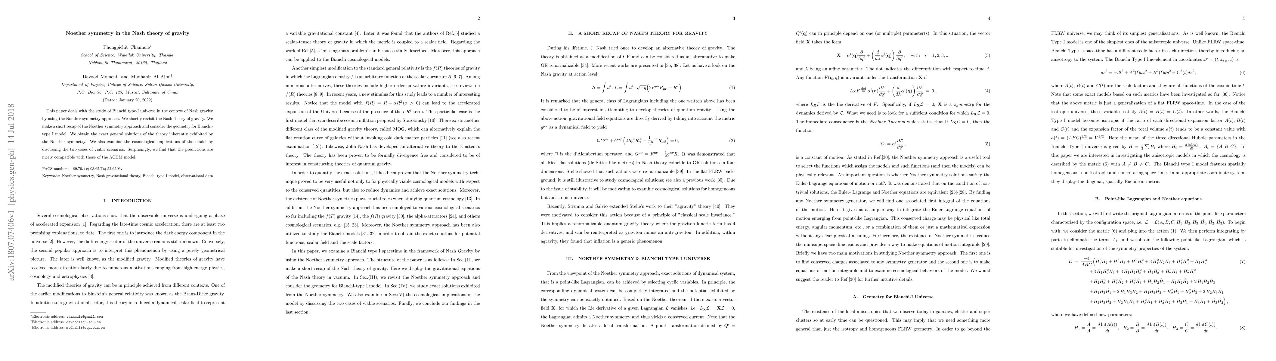 This paper deals with the study of Bianchi type-I universe in the context of Nash gravity by using the Noether symmetry approach. We shortly revisit the Nash theory of gravity. We make a short recap of the Noether symmetry approach and consider the geometry for Bianchi-type I model. We obtain the exact general solutions of the theory inherently exhibited by the Noether symmetry. We also examine the cosmological implications of the model by discussing the two cases of viable scenarios. Surprisingly, we find that the predictions are nicely compatible with those of the LambdaCDM model.