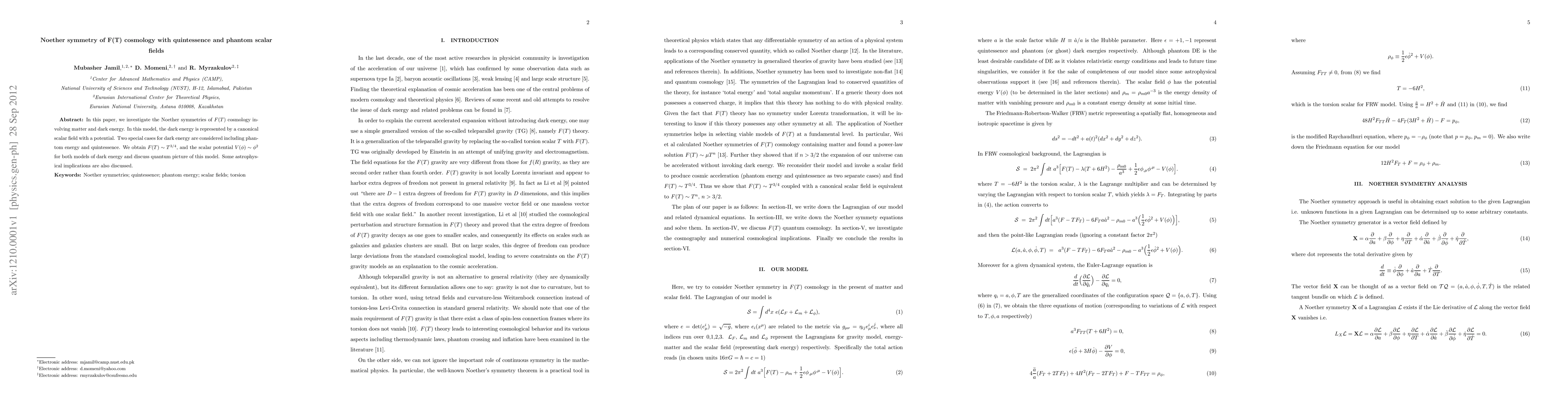 This paper explores Noether symmetries in $F(T)$ cosmology with quintessence and phantom scalar fields, deriving $F(T)\sim T^{3/4}$ and $V(\phi)\sim\phi^2$ for both dark energy models, and discusses potential astrophysical implications.