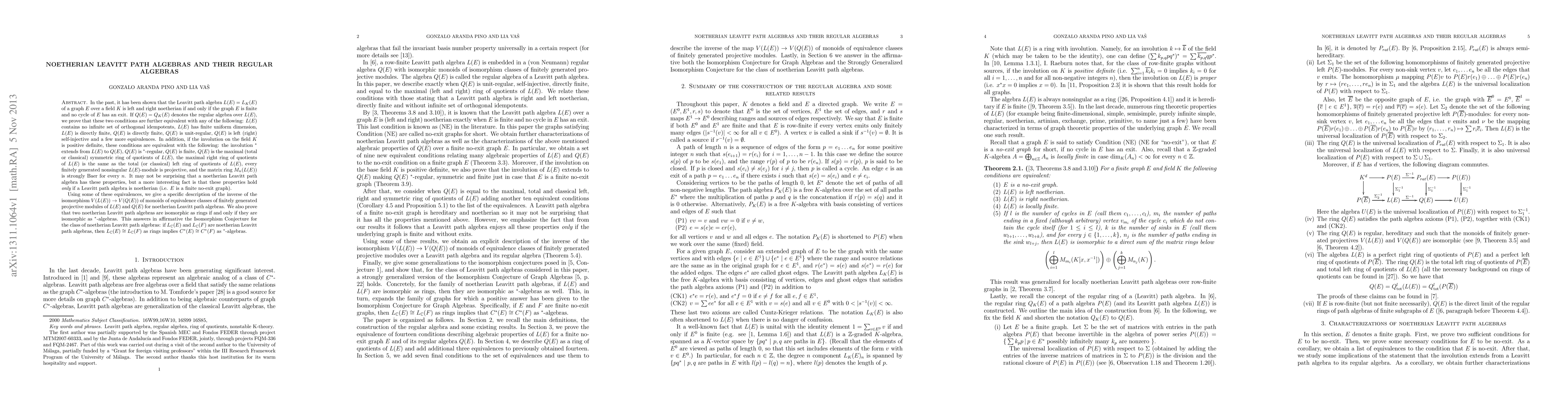 This paper investigates the properties and equivalences of noetherian Leavitt path algebras $L(E)$ and their associated regular algebras $Q(E)$. It proves that $L(E)$ being left and right noetherian is equivalent to several structural properties, including directly finiteness and unit-regularity. It also affirms the Isomorphism Conjecture for noetherian Leavitt path algebras, showing that isomorphism as rings implies isomorphism as $^\ast$-algebras.
