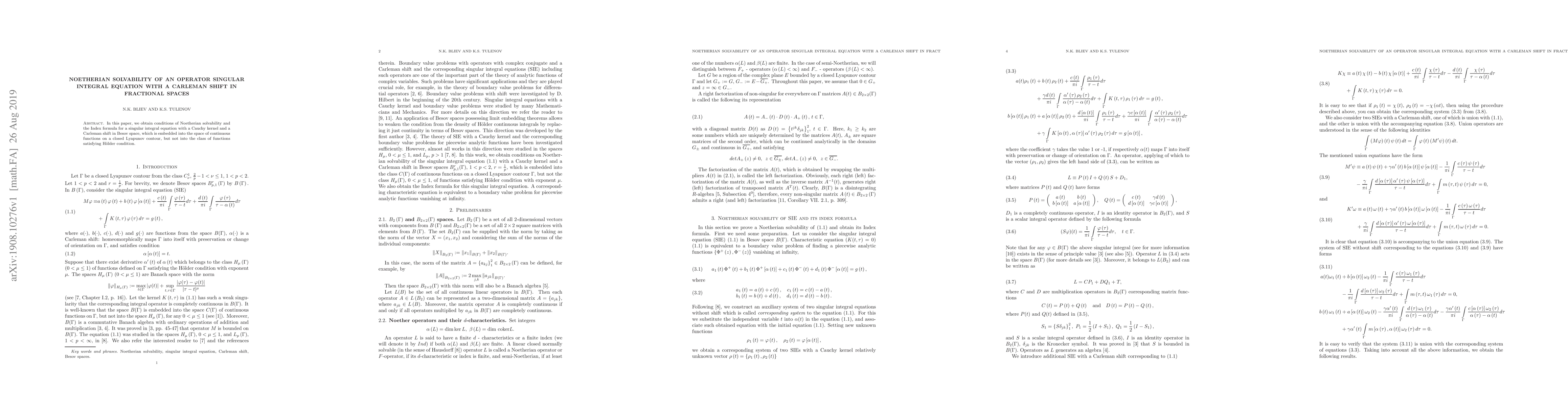 In this paper, we obtain conditions of Noetherian solvability and the Index formula for a singular integral equation with a Cauchy kernel and a Carleman shift in Besov space, which is embedded into the space of continuous functions on a closed Lyapunov contour, but not into the class of functions satisfying H\"{o}lder condition.