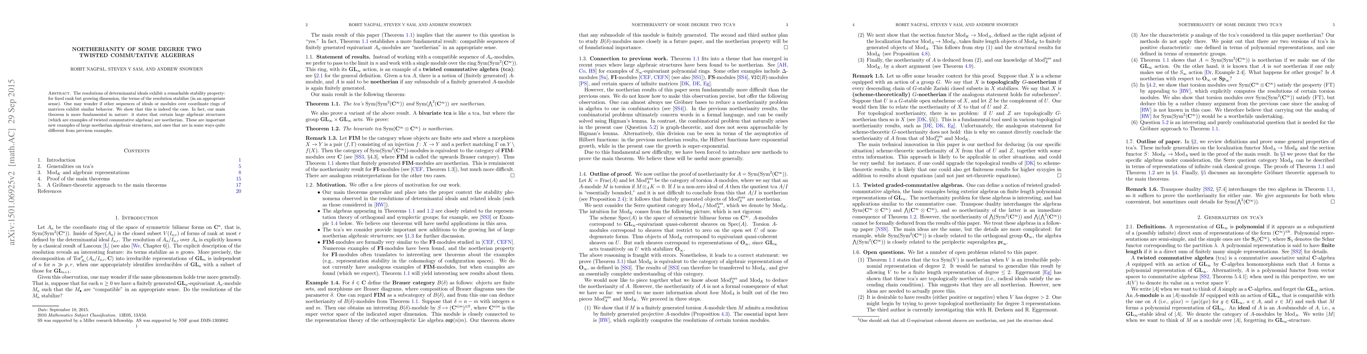 This paper demonstrates that specific degree two twisted commutative algebras exhibit noetherian properties, differing fundamentally from previously studied examples. The proof introduces novel methods for establishing noetherianity, potentially applicable beyond this context, and ties these algebras to the stable representation theory of classical groups.