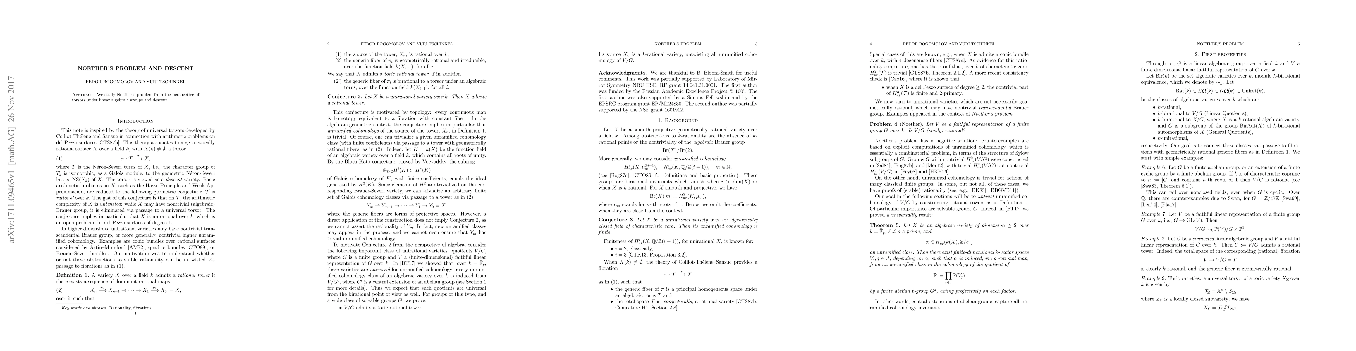 Summary: This paper investigates Noether's problem through the lens of torsors under linear algebraic groups and explores the application of descent theory to address the problem.