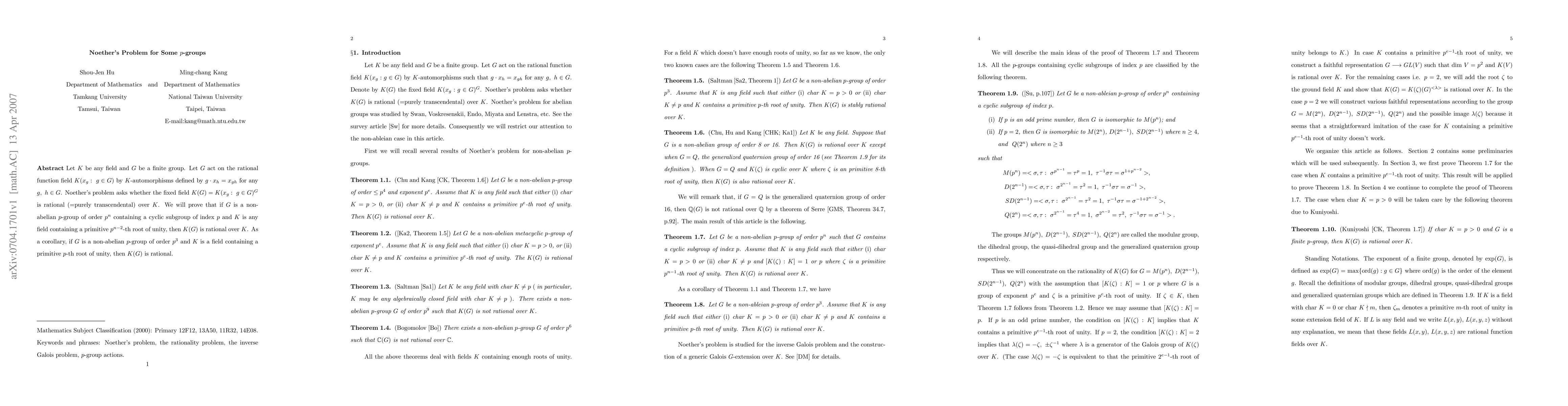 This paper proves that for a non-abelian p-group G of order p^n with a cyclic subgroup of index p, the fixed field K(G) is rational over K when K contains a primitive p^{n-2}-th root of unity. This addresses Noether's problem for these specific p-groups.