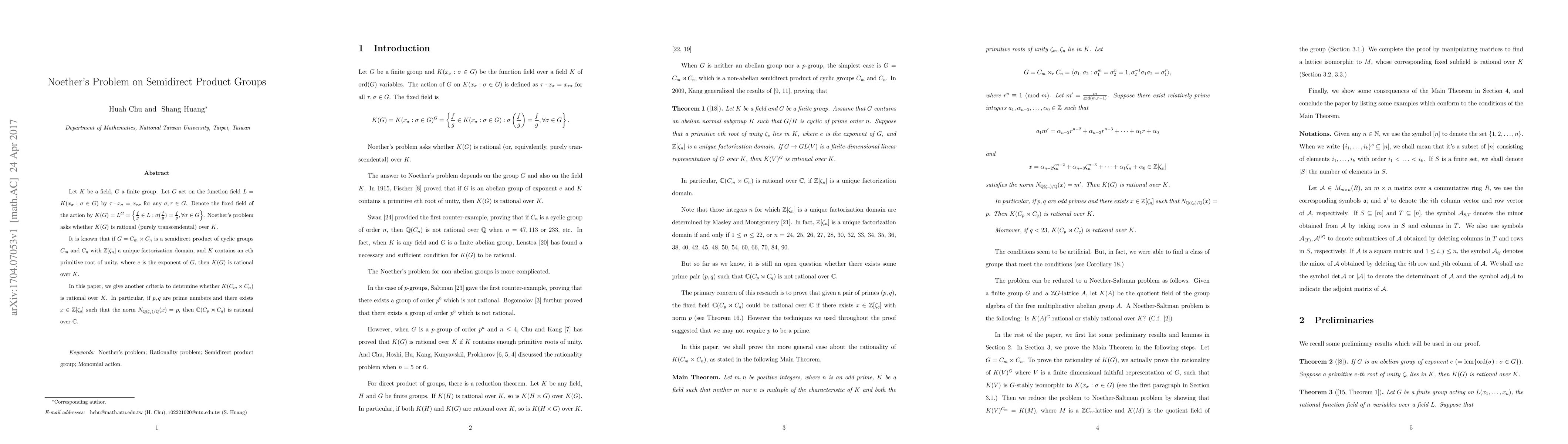 Let $K$ be a field, $G$ a finite group. Let $G$ act on the function field $L = K(x_{\sigma} : \sigma \in G)$ by $\tau \cdot x_{\sigma} = x_{\tau\sigma}$ for any $\sigma, \tau \in G$. Denote the fixed field of the action by $K(G) = L^{G} = \left\{ \frac{f}{g} \in L : \sigma(\frac{f}{g}) = \frac{f}{g}, \forall \sigma \in G \right\}$. Noether's problem asks whether $K(G)$ is rational (purely transcendental) over $K$. It is known that if $G = C_m \rtimes C_n$ is a semidirect product of cyclic groups $C_m$ and $C_n$ with $\mathbb{Z}[\zeta_n]$ a unique factorization domain, and $K$ contains an $e$th primitive root of unity, where $e$ is the exponent of $G$, then $K(G)$ is rational over $K$. In this paper, we give another criteria to determine whether $K(C_m \rtimes C_n)$ is rational over $K$. In particular, if $p, q$ are prime numbers and there exists $x \in \mathbb{Z}[\zeta_q]$ such that the norm $N_{\mathbb{Q}(\zeta_q)/\mathbb{Q}}(x) = p$, then $\mathbb{C}(C_{p} \rtimes C_{q})$ is rational over $\mathbb{C}$.